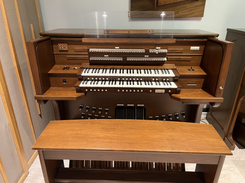 This Allen ADC-4300 model is a four channel, external speaker instrument. Perfect for a small/medium church setting. Four HC-15 external speakers are included. This organ has also been retrofitted with MIDI keying capabilities with front MIDI and audio ports installed. The tone/computer cage has also been rebuilt with all new voicing controls throughout. Call today to schedule an appointment to play this instrument in our Atlanta showroom!