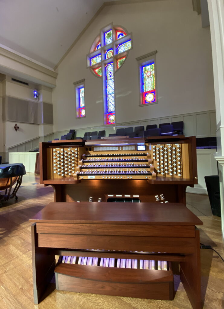 First Presbyterian Church of Marietta, GA has been home to an Allen model R350 that has served the church well for over 25 years. The church has returned to Allen Organs to upgrade to a much larger, 4-manual GX-460 model that was installed in December of 2025. The new organ is an 18 channel instrument, spread across five different chambers, including the rear antiphonal. A custom built Ingram Zimbelstern is also installed within the left choir loft area. The console itself is testament to Allen Organ’s ability to offer customized console designs upon customer request. This includes reverse color keys and multiple finishes on the console. Please see the expansive stoplist for this organ, below. On top of the stops listed, each division also has two additional, user defined, changeable Genisys voices that further add to the tonal palette.